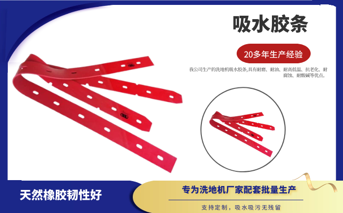 產(chǎn)品說明:吸水膠條是洗地機(jī)吸水扒上的重要部件,作用就是與地面接觸,產(chǎn)生一個(gè)密封的空間,把地面上的污水通過風(fēng)機(jī)進(jìn)行回收。吸水膠條一般分為耐油型(進(jìn)口PU原料)和普通型(進(jìn)口NR原料)兩種。