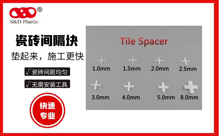瓷磚間隔塊可以有效的將在灌漿過程中分隔瓷磚.從而使瓷磚之間有精確均勻的美縫線.為鋪設(shè)瓷磚人員提供了快速,專業(yè),有效的工具.同時多尺寸的這些多間隔件易于操作,以便快速和均勻地拼接。