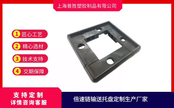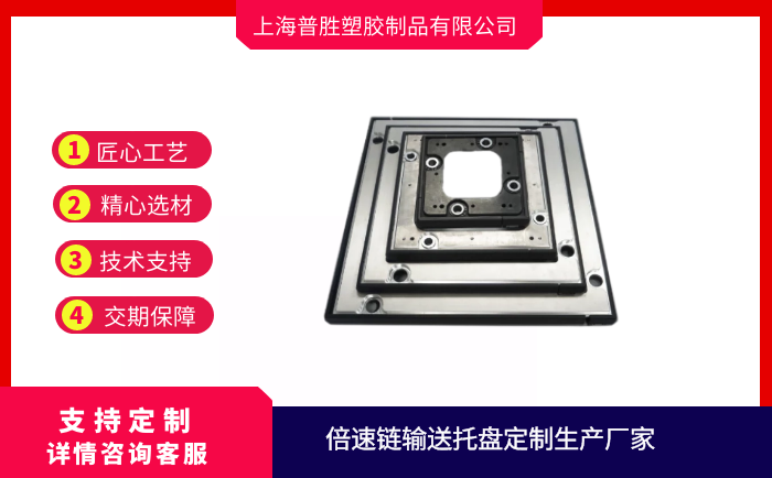 倍速鏈輸送托盤是自動(dòng)化生產(chǎn)線必不可少的輸送工裝,它是直接放置在鏈條滾輪上方的承載物,被輸送的物料或工件直接放置在托盤上,因此工件托盤是根據(jù)被輸送工件的形狀和尺寸專門設(shè)計(jì)的,由于托盤是放置在倍速鏈鏈條上隨鏈條一起運(yùn)動(dòng)的,托盤有金屬材質(zhì)及塑料材質(zhì),框架上有耐磨條。托盤輸送過程中會(huì)產(chǎn)生損傷,為了便于安裝,因此在托盤的4個(gè)角安裝滾輪,托盤的最外邊與線體內(nèi)側(cè)預(yù)留10mm間隙,防止運(yùn)行過程中與線體邊緣出現(xiàn)卡滯現(xiàn)象。